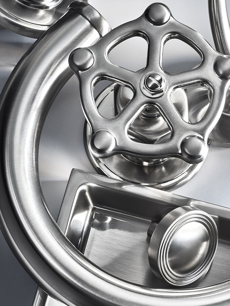 Featuring authentic finishes that look beautiful individually or intermingled, our intelligent system makes selection effortless. The tones within each of our 3 finish worlds — nickel, brass and elemental — mix seamlessly, within a room or throughout an entire home.
