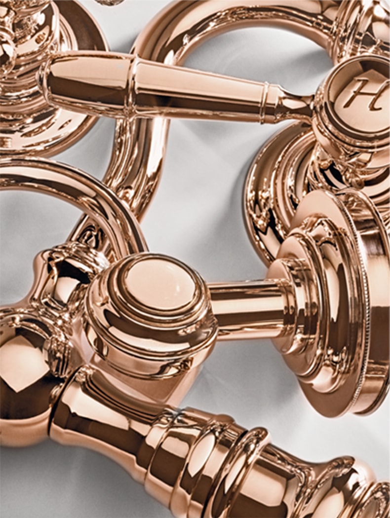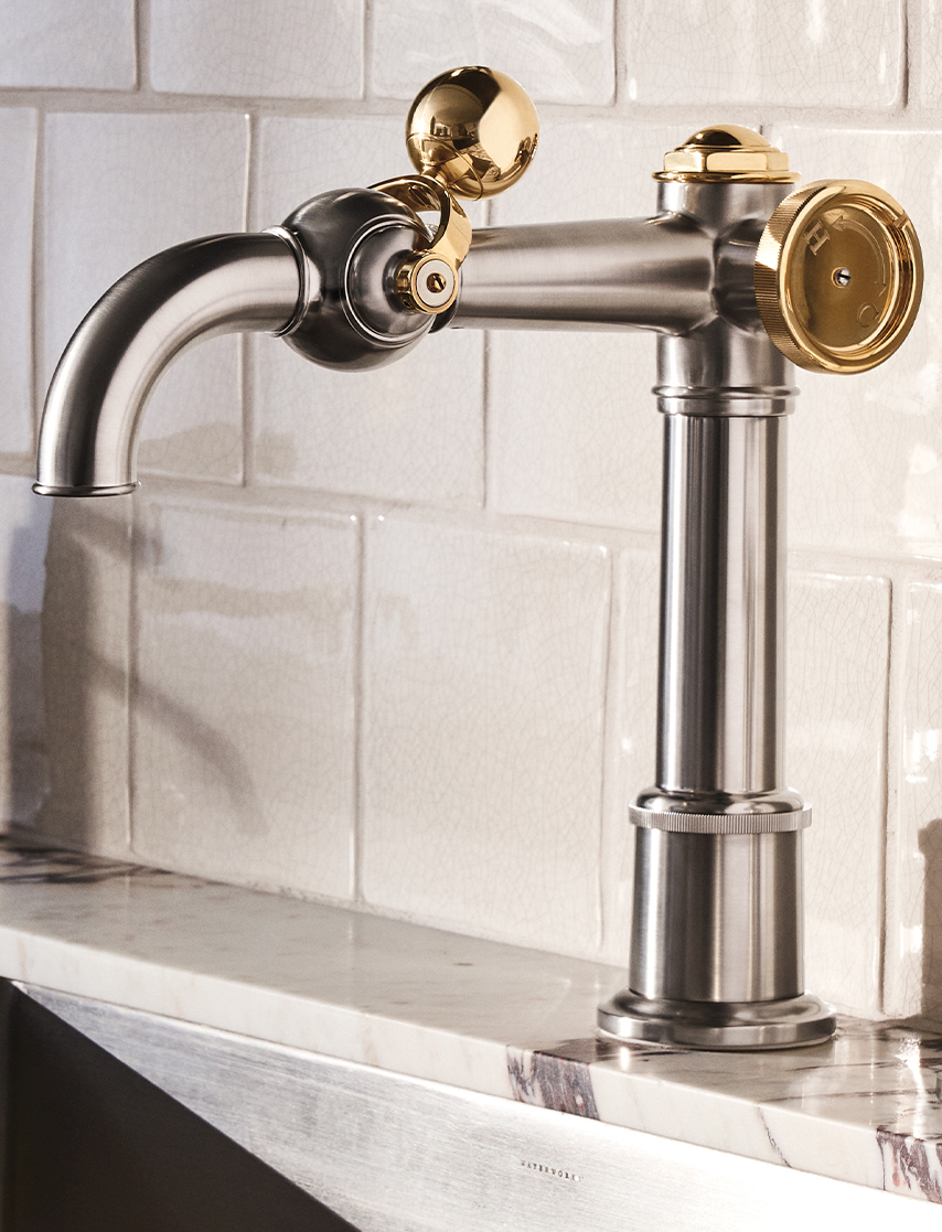 A rich, sophisticated finish that recalls luxury timepieces and fine jewelry, developed exclusively for Waterworks.